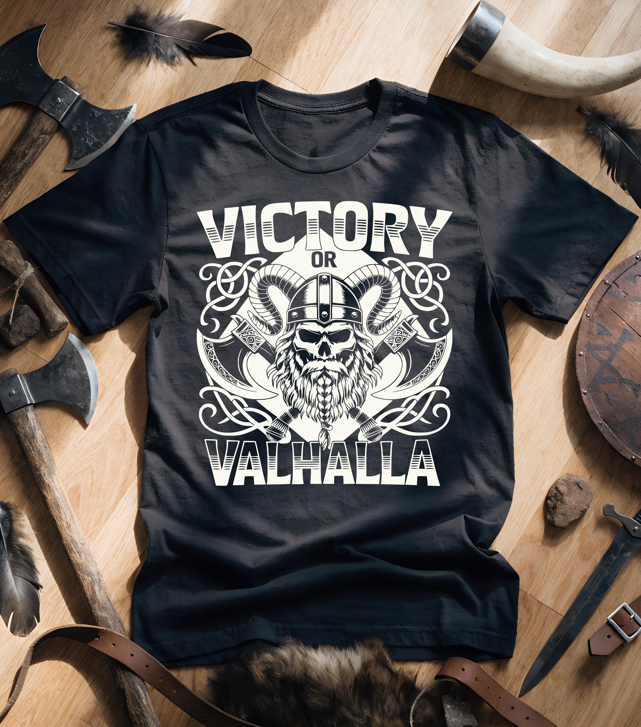 Victory or Valhalla T-Shirt, Viking Shirt, Norse Mythology Tee, Valhalla Warrior Graphic, Nordic Rune Gift