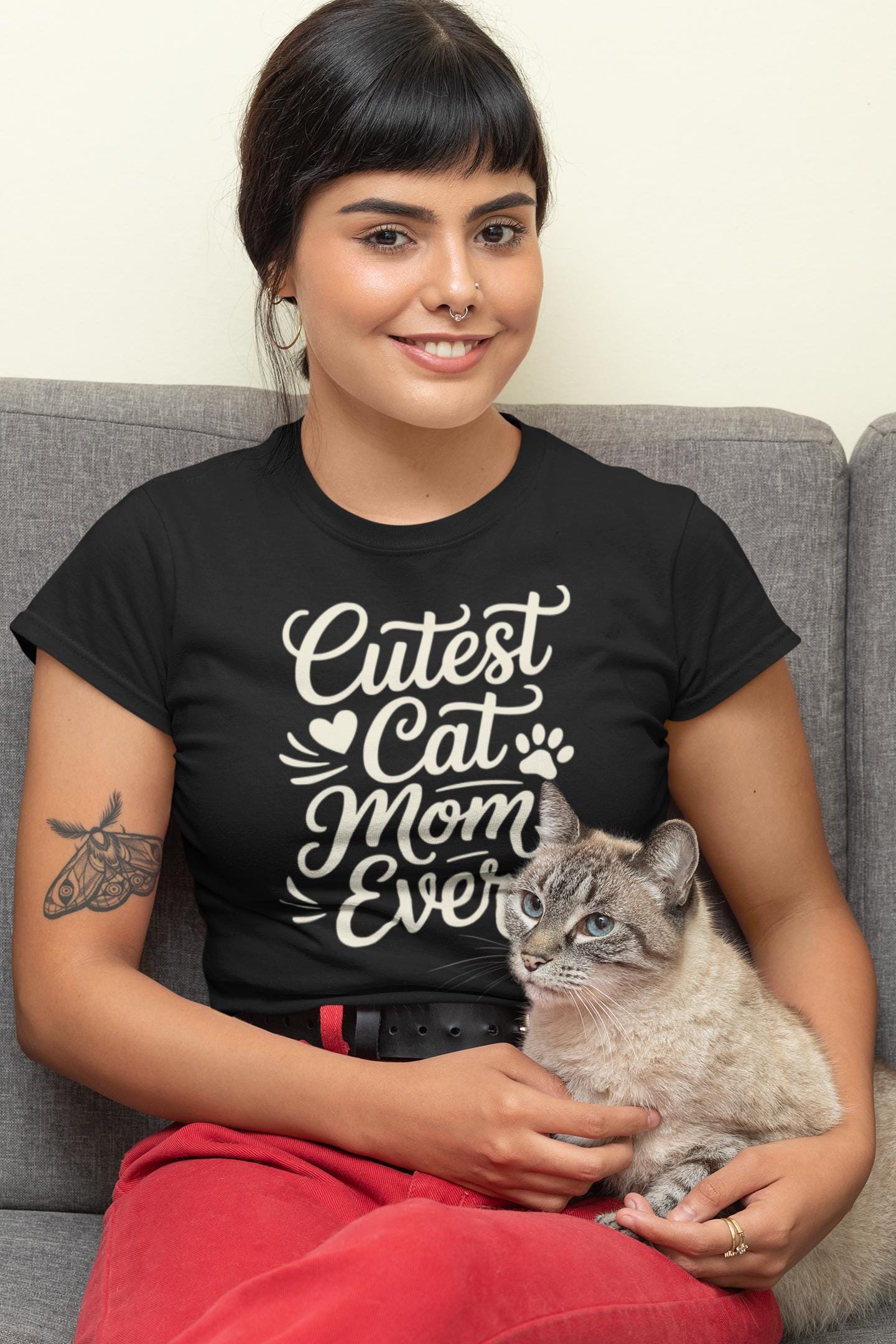 Perfect for the woman whose cat rules the house, this shirt turns proud cat motherhood into a sweet everyday tee. Built for cat moms, pet lovers, rescue cat owners, wives, girlfriends, daughters, and cozy cat people, it’s a thoughtful gift for Mother’s Day, birthdays, holidays, or from the fur baby itself. Soft, comfortable, and easy to wear, it works for cozy days at home, brunch, errands, coffee runs, pet store trips, or weekends. A cute cat mom shirt that instantly connects with women who proudly embrace being the favorite human, cuddle partner, snack provider, and full-time servant to their beloved feline.