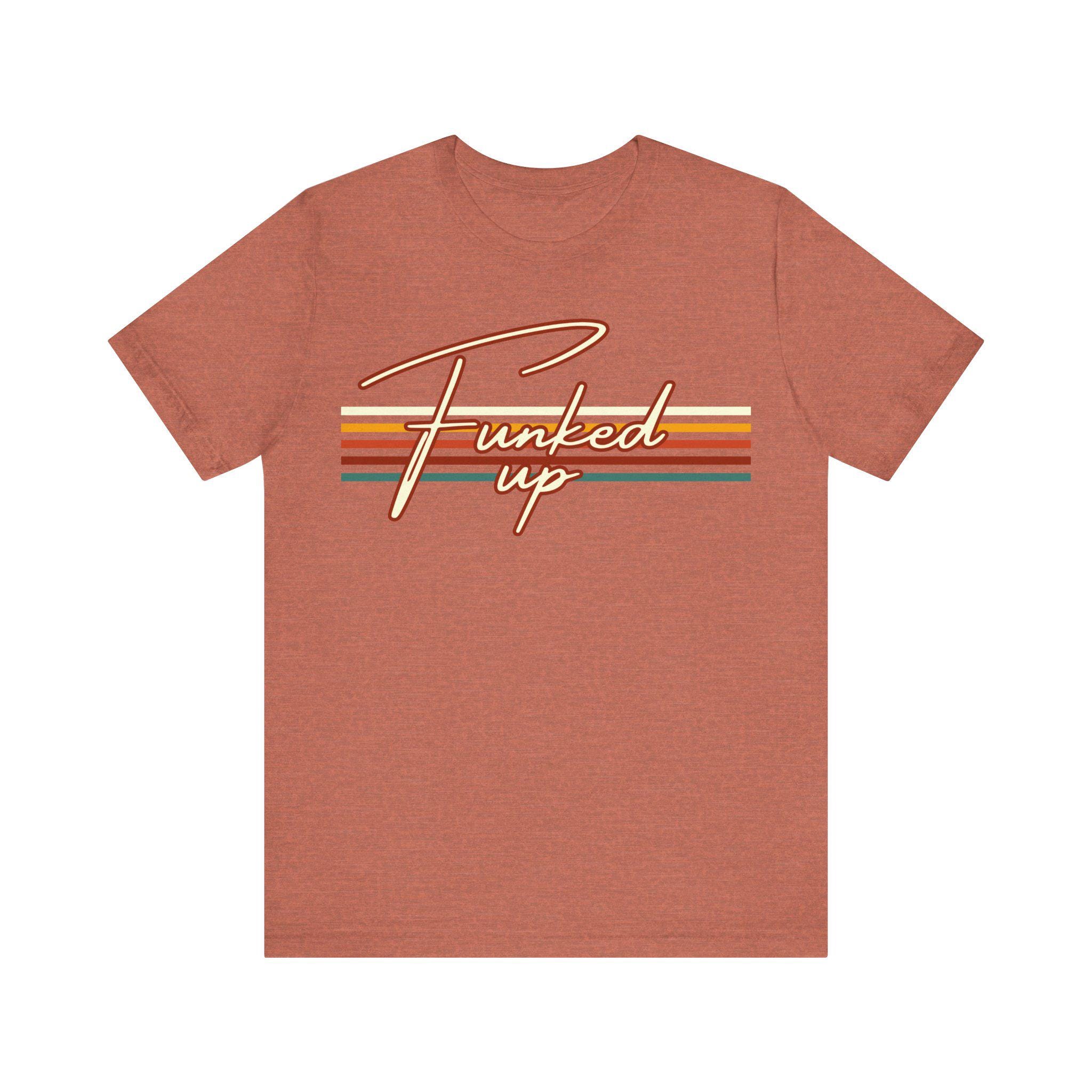 This Funked Up 70s T-Shirt Vintage Retro Style Party Tee brings a groovy and nostalgic vibe, perfect for those who love retro fashion and vintage aesthetics. It is ideal for casual gatherings, themed parties, and music festivals, making a statement with its unique design. A must-have for anyone looking to add a touch of 70s flair to their wardrobe.