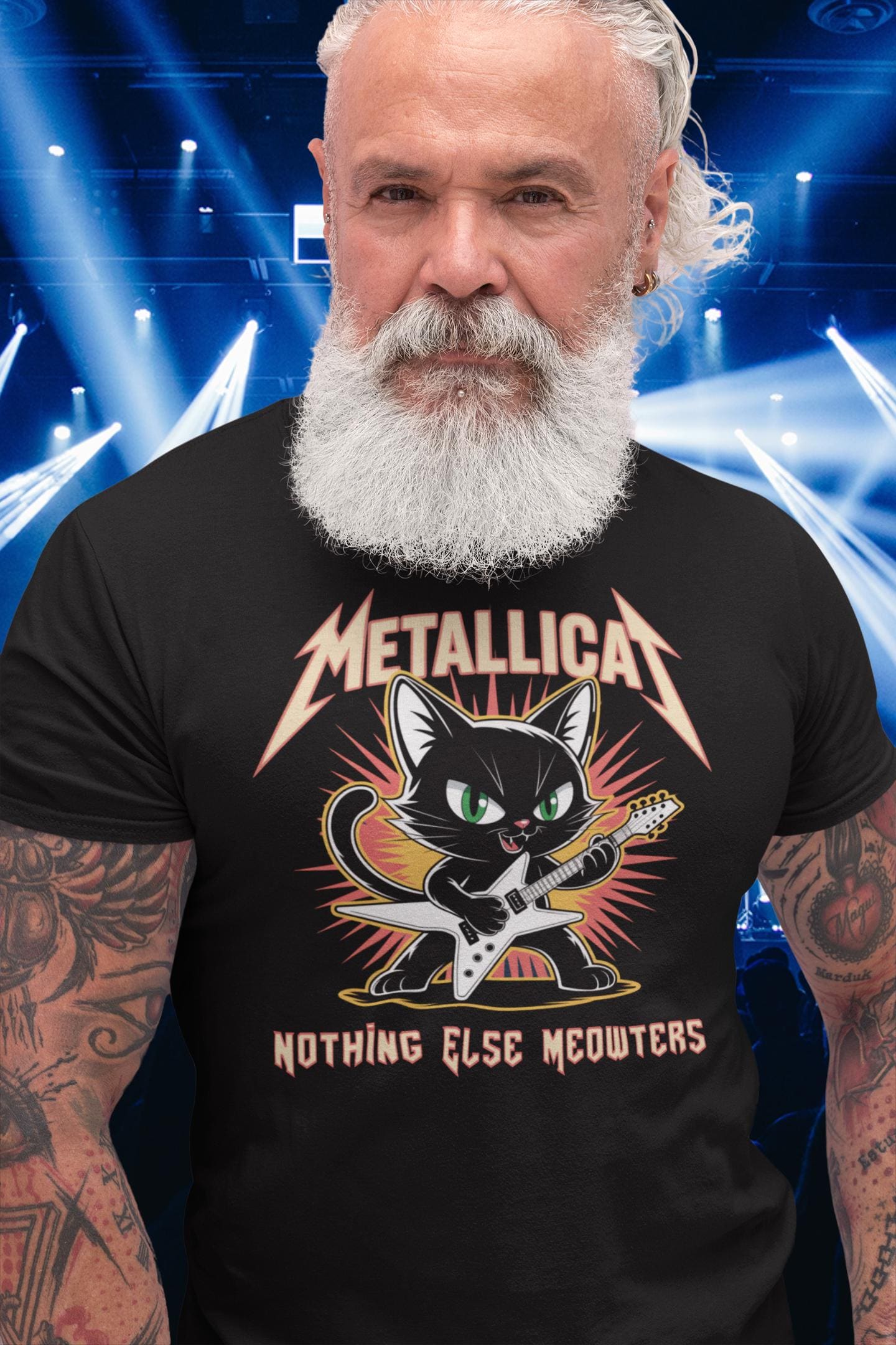 The design sparks conversations: music fans laugh, cat lovers grin, and anyone who grew up on classic metal gets the wink. Lightweight Airlume combed and ring-spun cotton keeps you cool at shows, coffee runs, or lazy weekends. The color blends on heather options add subtle texture for a lived-in vibe.